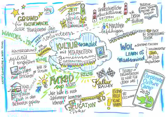 Auch in 2021 wurde das Corporate Culture Camp in virtuellen Räumen durchgeführt. In zwei Tagen wurde im Online Barcamp die Unternehmenskultur der Zukunft gestaltet. Mit dabei natürlich führungswerk unter anderem mit einer Session zum Thema "Unternehmenskultur fördern. Zwischen ZOOM Müdigkeit und effizienten virtuellen Formaten".